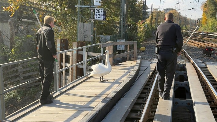 Nach erster Einschätzung des Schwanenvaters hatte sich der Schwan bei seinem Ausflug in den Gleisbereich nicht verletzt.