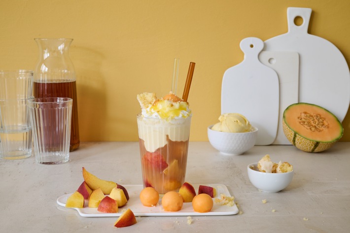 Nicht ganz so leicht, dafür aber ein echter Wow-Moment: Eine neue Eistee-Variante mit Floating-Effekt kombiniert kalten Schwarztee mit Mineralwasser, Vanilleeis und süßen Toppings oder Obststücken – eine besondere Belohnung an langen Sommertagen. Wer es ausprobieren möchte, für den hat der Deutsche Tee & Kräutertee Verband noch einen heißen Rezept-Tipp parat.