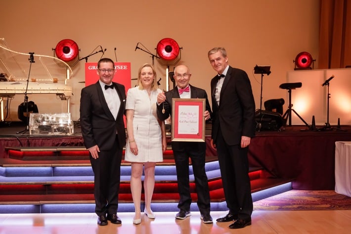 Im Rahmen des diesjährigen SG Frühjahrsempfangs und des zentralen Galaabends im Hotel „Grand Elysee“, der am 24.3.2023 mit rund 300 Spitzenvertretern der deutschen Süßwarenwirtschaft in Hamburg stattfand, wurde Karl Heinz Einhäuser, Beiratsvorsitzender der Viba sweets GmbH aus Schmalkalden, mit der 99. „Goldenen Uhr des SG“, ausgezeichnet.