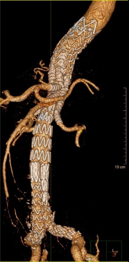 Entwickelt wurde das System von Prof. Gou an der University of Peking (China) – erste positive Erfahrungen mit ca. 95 Implantationen wurden vor dem erstmaligen Einsatz in Europa an der Asklepios Klinik Nord daher bereits in China gemacht. „Aufgrund der ausgewiesenen Expertise unseres Teams der Gefäßchirurgie durften wir als erste Behandler in Europa diesen Eingriff mit dem High-End Stentgraft durchführen“, so PD Dr. Marwan Youssef. „Besonders freut es uns, dass wir diese Innovation für den Patienten einsetzen können und ihm so eine Implantation zukam, die weniger komplex und damit sicherer war, als bisherige Verfahren mit der bekannten Prothesen-Generation. Zugleich dauerte sie weniger lang, was das Risiko der Anästhesie noch einmal reduzierte. Der Patient hat sich deshalb auch deutlich schneller von dem Eingriff erholt – bereits am Tag nach der OP fühlte er sich gut und konnte schon 10 Tage später aus der Klinik entlassen werden. Dem Patienten geht es gegenwärtig sehr gut.“