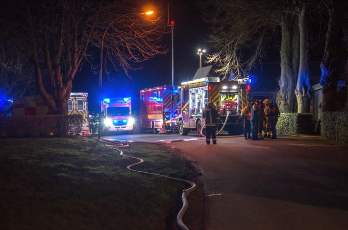 Aus bisher unbekannter Ursache ist in der Sonntagnacht (26.02.2023) gegen 01:33 Uhr ein Feuer im Bereich der Küche eines landwirtschaftlichen Betriebes ausgebrochen. Aufgrund der unklaren Lage und der Größe des Objektes wurden die Einsatzstichwörter im Einsatzverlauf bis zum Feuer 3 angepasst. Die Feuerwehren konnten das Feuer im Erdgeschoss schnell unter Kontrolle bringen. Im Dachbereich war die Lage aber noch unklar, aus den geöffneten Fenstern drang noch Qualm heraus, daraufhin wurde die Drehleiter der Feuerwehr Nortorf nachgefordert. Es wurden mehrere Trupps mit schwerem Atemschutz im eingesetzt um das Feuer zu. Der Löschzug Gefahrgut des Kreises Rendsburg-Eckernförde war mit der Dekon Einheit sowie der Drohnen Einheit im Einsatz. Mit der Drohne wurde das Gebäude mittels der Wärmebildkamera von oben kontrolliert. Die Dekon Einheit sorgte dafür das die verschmutze Einsatzschutzkleidung der Atemschutzgeräteträger verpackt wurde und sich die Kameraden dort Duschen konnten um eine Kontamination zu verhindern. Die Wasserversorgung wurde über mehrere Hundert Meter verlegt. Die Nachlöscharbeiten sowie die Aufräumarbeiten dauerten noch bis in die frühen Morgenstunden an. Der Besitzer wurde mit einem Rettungswagen in eine nahegelegene Klinik gebracht. Für die Haustiere (Hund und Katze) kam leider jede Hilfe zu spät, diese konnten nur noch geborgen werden. Zur Schadenshöhe sowie zur Ursache kann derzeit keine Auskunft erteilt werden. Die Kriminalpolizei hat die Brandstelle beschlagnahmt und nimmt die Ermittlungen auf.