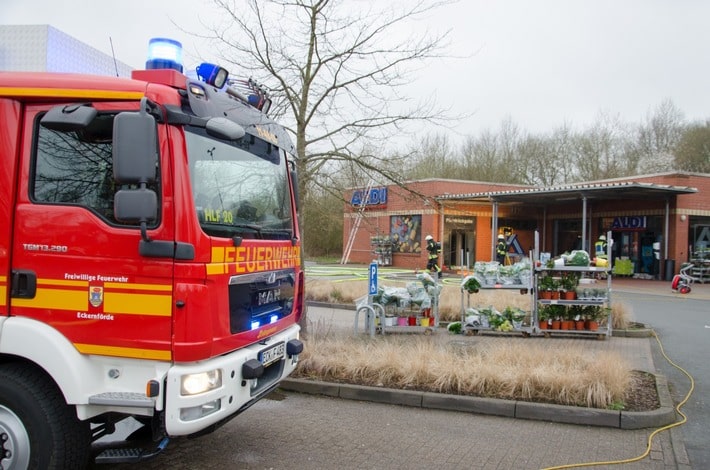 FW-RD: Feuer in einer Aldi-Filiale in Eckernförde – Mitarbeiter und Kunden konnten sich retten