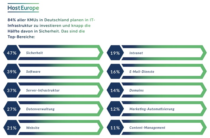 84 Prozent aller befragten KMUs in Deutschland planen in ihre IT zu investieren, knapp die Hälfte davon in Sicherheit. Das geht aus der aktuellen Studie von Host Europe hervor, für die in Zusammenarbeit mit YouGov im Oktober 2022 über 500 IT-Experten aus dem deutschen Mittelstand befragt wurden.