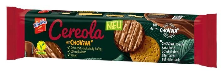 Cereola von De Beukelaer verfeinert knusprige Kekse in einer neuen Variante mit ChoViva – dem neuen, schokoladigen Genusserlebnis, das ganz ohne Kakao auskommt. In einem neuartigen, fermentationsähnlichen Herstellungsverfahren entsteht aus regionalem Hafer und Sonnenblumenkernen eine Alternative zu Schokolade, die die Cereola Kekse zu einem leckeren Geschmackserlebnis abrundet. Die neuen Cereola mit ChoViva (150 Gramm) basieren auf einer rein pflanzlichen Rezeptur und sind nachhaltiger verpackt. Ab sofort ist die Innovation in REWE Märkten erhältlich.