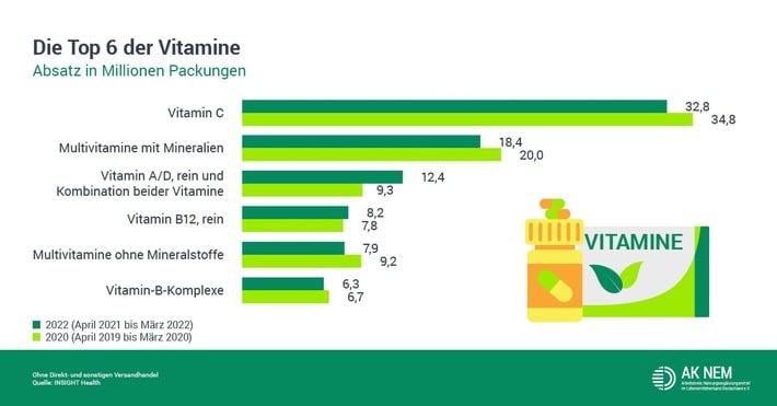 Berlin (ots) – Vitamin C und Magnesium sind nach wie vor die beliebtesten Nahrungsergänzungsmittel, obwohl beide weniger gekauft wurden* als…