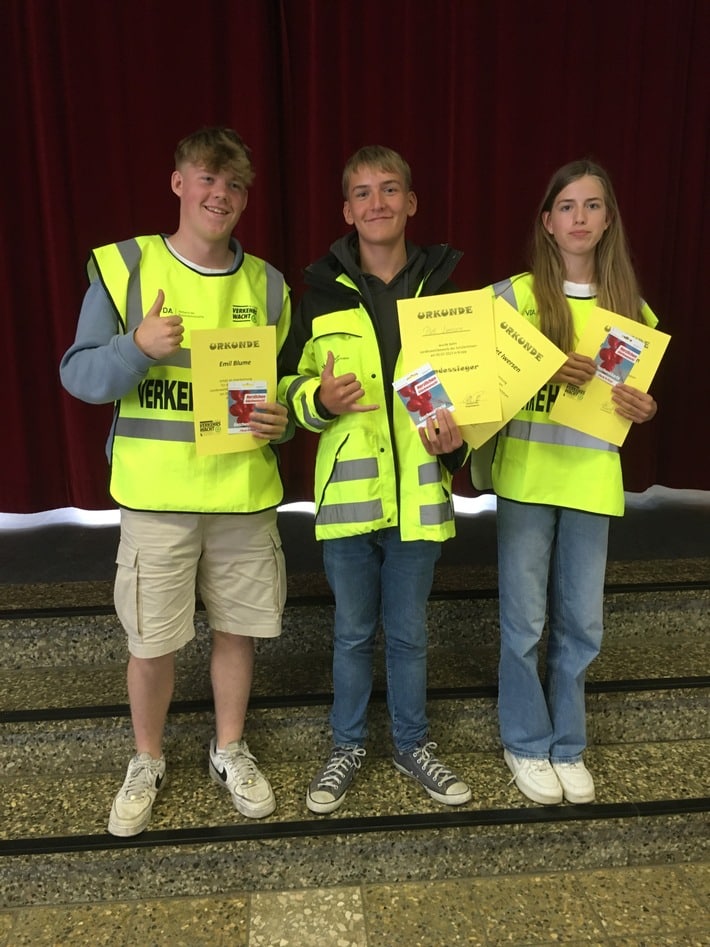 Als Sieger konnte der 14-jährige Piet Iwersen von der Gemeinschaftsschule Viöl die Urkunde und den Gutschein eines Elektrofachmarktes von der Geschäftsführerin der Landesverkehrswacht, Frau Pier, in Empfang nehmen. Den 2. Platz belegte die 13-jährige Mona Kantimm von der Geestlandschule in Kropp. Dritter wurde Emil Blume (15 Jahre) vom Richard-von-Weizsäcker-Gymnasium in Barmstedt. Alle teilnehmenden Schülerlotsen erhielten Gutscheine.