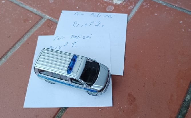 Als die Beamten der Polizeistation am Dienstagnachmittag (09.01.) zu ihrer Dienststelle zurückkehrten, fanden sie im Eingangsbereich eine freudige Überraschung vor. Auf der Türschwelle lagen zwei Briefe und ein kleiner Modell-Streifenwagen.