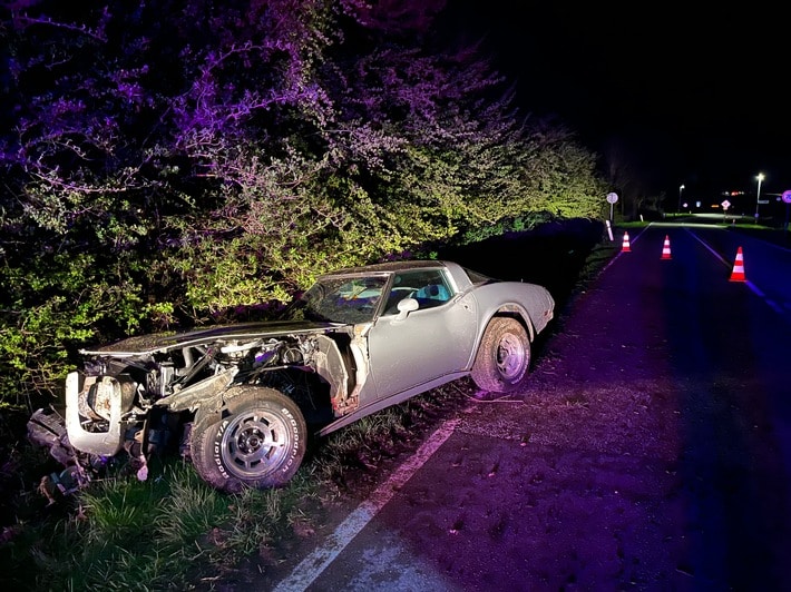 In Höhe Poggenpohl kam dieser mit seiner Corvette aus noch ungeklärter Ursache von der Fahrbahn ab. Dabei blieb er zum Glück unverletzt.