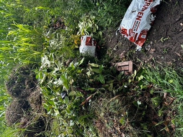 Es handelt sich hier um ca. 6 Kubikmeter Gartenabfälle, darunter aufgerissene