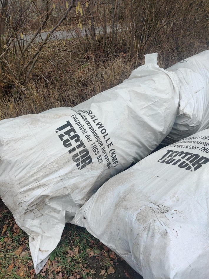 In den fünf Säcken mit einem jeweiligen Fassungsvermögen von 700 l befand sich Dämmwolle.
