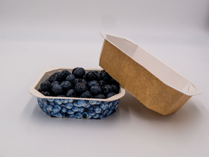 Die neue, achteckige Top-Seal-Schale Stackpack eignet sich durch seinen optional hinzufügbaren, biobasierten Barriereschutz insbesondere zum Verpacken trockener, feuchter und fetthaltiger Produkte. Je nach Inhalt können bei der Schale speziell beschichtete, plastikfreie Kartonqualitäten gewählt werden, so etwa bei feuchtigkeitsintensiven Produkten. Die Beschichtungen sind für den direkten Lebensmittelkontakt geeignet und lassen sich problemlos mit der Schale recyceln. Damit ist Stackpack besonders gut für empfindliche Produkte, wie zum Beispiel Beerenobst, Pilze, Tomaten oder Kräuter geeignet und stellt einen idealen Ersatz von Plastikschalen im Obst- und Gemüsebereich dar.