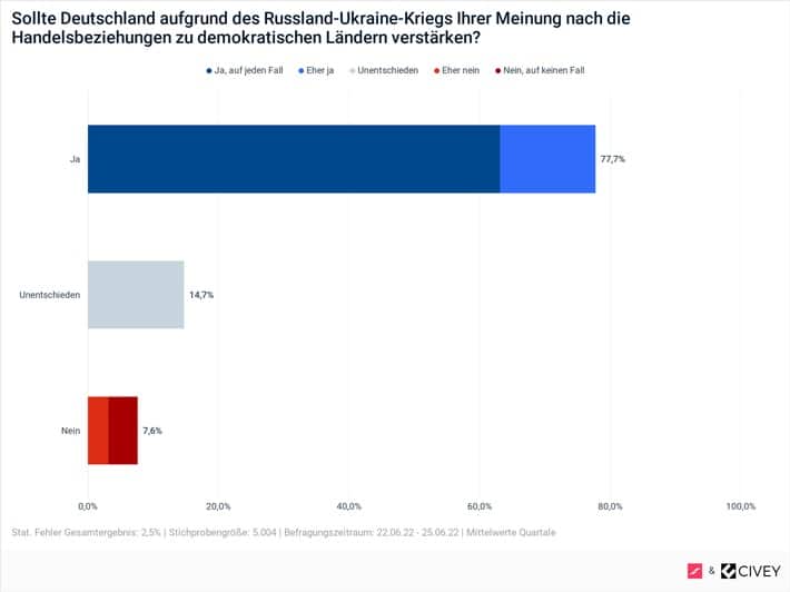 Berlin (ots) – Als Reaktion auf den russischen Angriffskrieg gegen die Ukraine wollen die Deutschen die Handelsbeziehungen zu demokratischen Ländern…