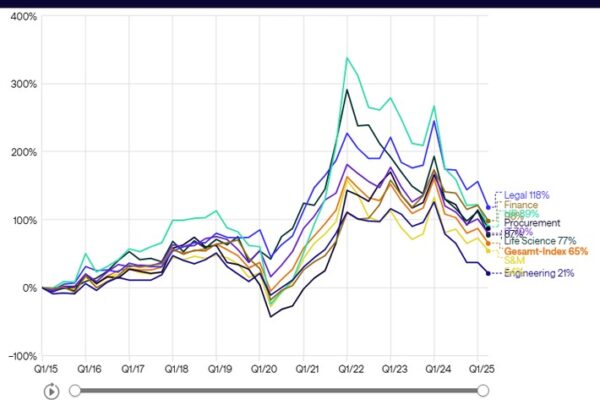 Mannheim (ots) – – Nach Anstieg in Q1: Gesamtnachfrage im zweiten Quartal deutlich rückläufig – HR, Legal und Life Science…