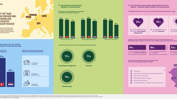 Aktuelle Unternehmensumfrage / Entscheider*innen in europäischen Unternehmen sehen Deutschland und das Rheinische Revier als Top-Standorte für ihre Expansion ins Ausland