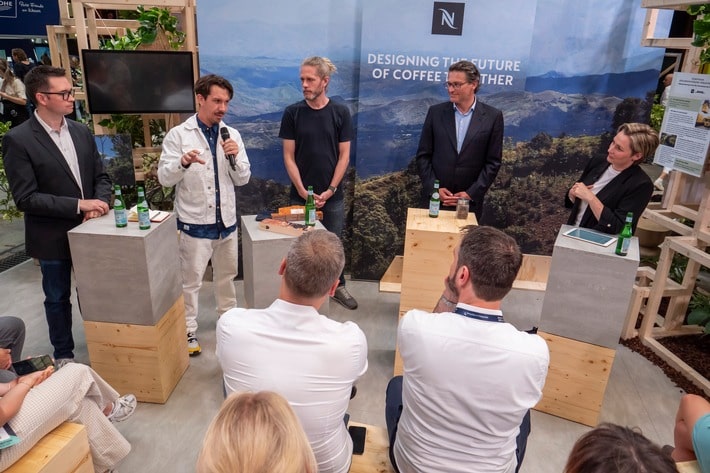 Unter dem Motto „Designing the Future of Coffee“ sind auf dem diesjährigen GREENTECH FESTIVAL (GTF) verschiedene Akteur:innen und Expert:innen zusammengekommen. Auf zwei Panel Talks wurde am Nespresso Stand diskutiert. Mit dabei: die Rainforest Alliance, B Lab, OpenSC (Supply Chain-Verifizierung und Rückverfolgung mittels Technologien wie KI und Blockchain), DHL mit dem Pilotprojekt Clean Process, und Nespresso selbst. Zusammen bilden Sie das „Coffee Co-Lab“. Für die externe Expert:innensicht dabei: das PIK Potsdam-Institut für Klimafolgenforschung.